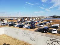 21世紀になってからは東海道線のガード下まで自動車が入ることもなかった河川敷駐車場ですが、昼過ぎに着いて止められたのはちょうどガード下。こちらも久しぶりに大入りでした。